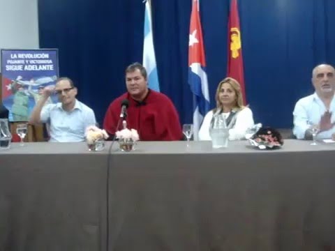 El Héroe cubano Ramón Labañino tras soportar quince largos años de injusta prisión en Estados Unidos fue liberado y visitó Argentina. El video lo muestra junto a su esposa y al Embajador cubano en Argentina. El Poncho Rojo Salteño que luce el cubano le acababa de ser obsequiado por el director del Museo Ernesto Che Guevara en Argentina, Eladio González toto.
